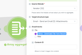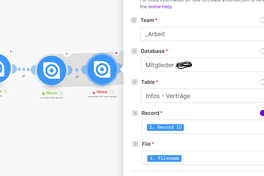 Guten Morgen liebe Ninoxer Habe mir über make.com den Email Versand eingerichtet. Dieser funktioniert. Nun habe ich diesen erweitert um den Datenanhang von mehreren Daten anzuhängen.…