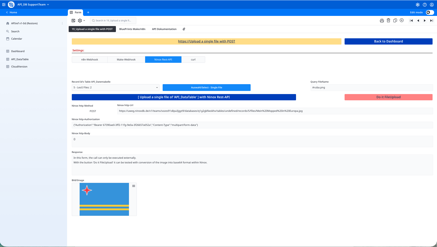 Als Ergebnis wird bei Auswahl von 'Ninox-Rest-API' natürlich ein Ergebnis zurück gegeben.