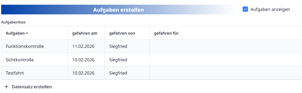 Im Moment füge ich jede der drei Aufgaben einzeln per klick auf (+ Datensatz erstellen) hinzu.