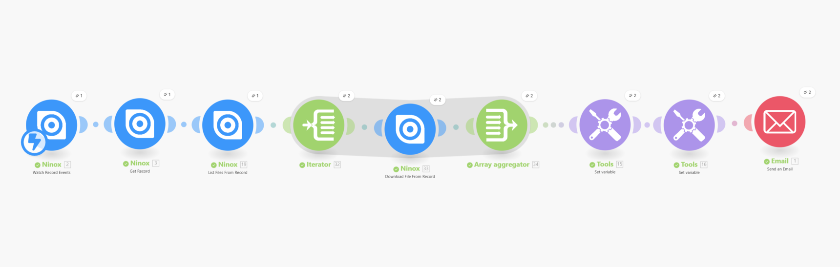 make.com Ninox->Email mit mehreren Attachments