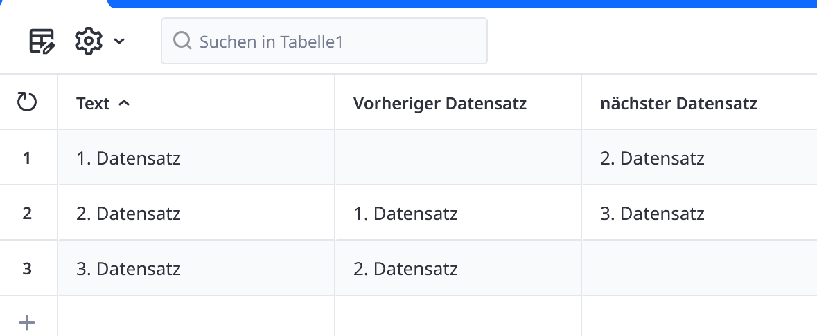 let me := number(this); let previous := me - 1; record(Tabelle1,previous).Textlet me := number(this); // holt die Datensatznummer des aktuellen Datensatzes und formatiert die als Zahl (erfahrungsgemäß funktioniert es so zuverlässiger)