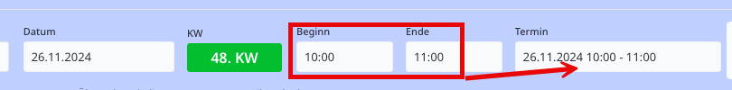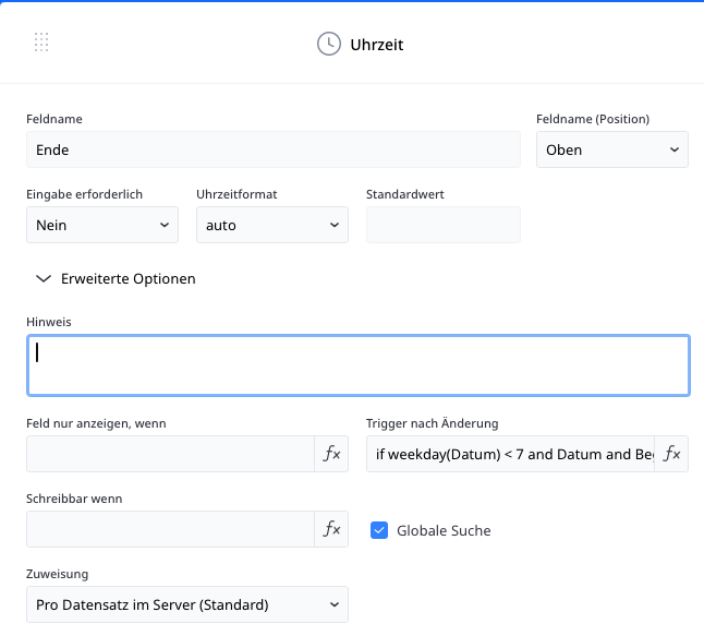 Beim Feld Ende wird nach Eingabe ein Trigger ausgeführt