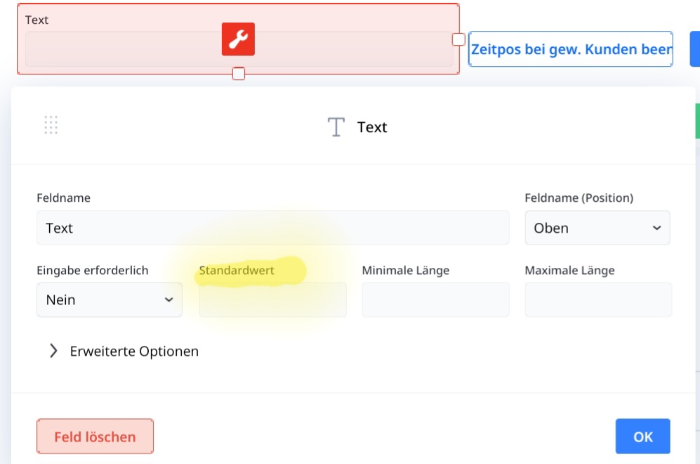 welche Syntax braucht es, um den Inhalt eines Textfeldes standardmäßig in einem neuen Datensatz anzeigen zu lassen?