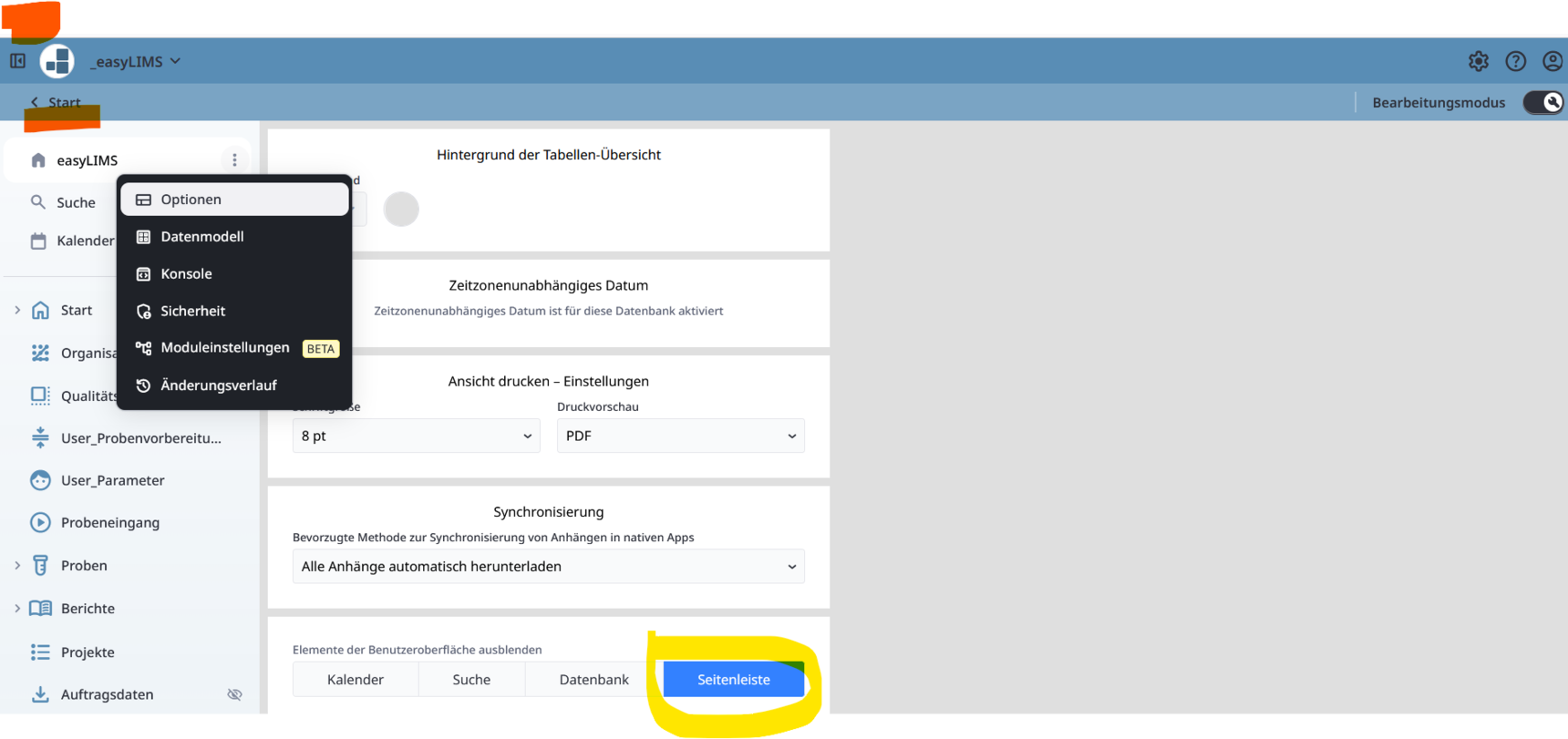 Dann lässt sich das Icon zum Einblenden der Seitenleite (rote Markierung) nur noch mit Aktivieren des Bearbeitungsmodus anzeigen.