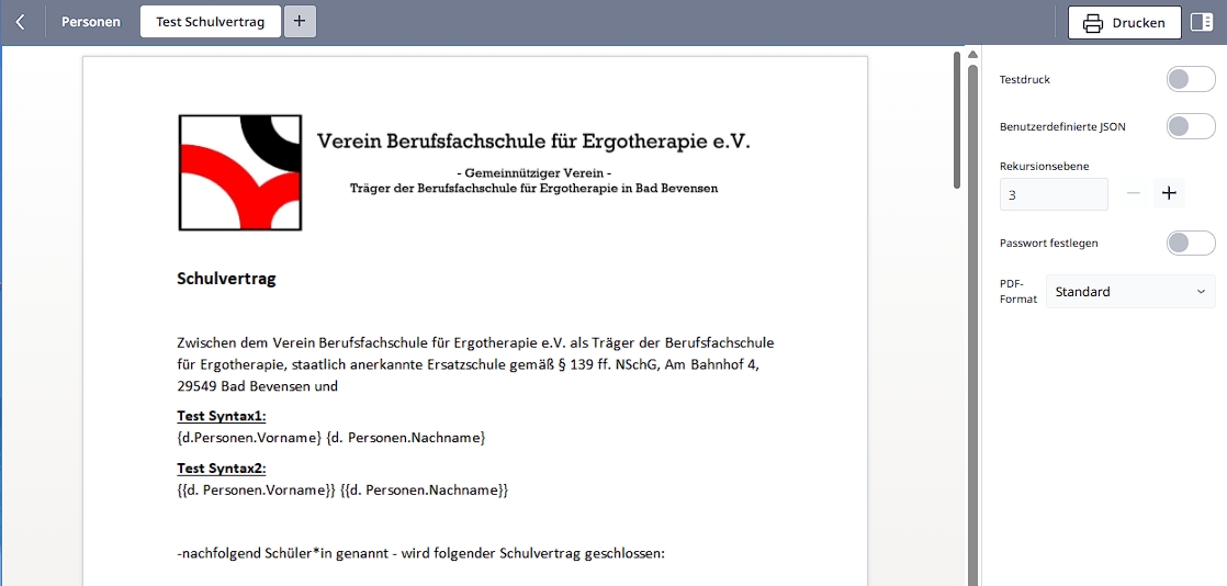 - Im per Druck erzeugten pdf sind die beiden Felder leer!?