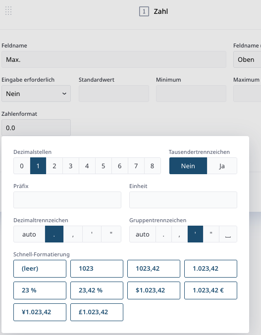 Zahlenfeld Einheit Dynamisch